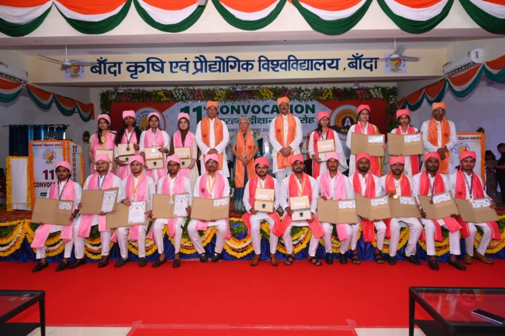 UP TIMES NEWS- उत्तर प्रदेश की राज्यपाल आनन्दी बेन पटेल ने कृषि एवं प्रौद्योगिक विश्वविद्यालय के 11वें दीक्षांत समारोह का शुभारम्भ किया तथा दीक्षांत समारोह में विभिन्न संकायों में स्वर्ण,रजत एवं कांस्य पदक छात्र/छात्राओं को पदक प्रदान किये तथा 350 छात्र/छात्राओं को उपाधियां प्रदान की गयी। इससे पूर्व राज्यपाल ने बाॅदा कृषि विश्वविद्यालय में आर्ट गैलरी एवं म्यूजियम का उद्घाटन भी किया।दीक्षान्त समारोह कार्यक्रम में सम्बोधित करते हुए राज्यपाल/कुलाधिपति आनन्दी बेन पटेल ने कहा कि विश्वविद्यालय में आयोजित 11वें दीक्षान्त समारोह में उपस्थित होने पर मुझे प्रसन्नता हो रही है। उन्होंने छात्र/छात्राओं को मेडल प्रदान करते हुए उनके उज्जवल भविष्य हेतु निरन्तर कार्य करने की प्रेरणा दी। उन्होंने 12 छात्रों एवं 7 छात्राओं को विभिन्न संकायों के मेडल प्रदान किये। उन्होंने कहा कि कृषि क्षेत्र की शिक्षा में छात्राओं की भागीदारी बढ रही है। कृषि शिक्षा एवं अनुसंधान में छात्राओं को आगे बढाया जाए। कृषि क्षेत्र में महिलाओं की भागीदारी महत्वपूर्ण है, यह योगदान शिक्षा एवं अनुसंधान में भी हो। राज्यपाल ने कहा कि जहां नारी है,वहीं सृजन है, महिलायें ही सृष्टि की रचना और पोषण करती हैं।